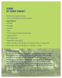 Inglewood’s community emerges within the recipe for Texas home garden vegetable sides and local game; fresh fish caught in the Virgin Islands; sun-drying Alabama pecans, Filipino adobo spice mix and New York brisket. Reminisces include a working mom with hungry children, a misbehaving brother shirking field work and a home where leftovers were never wasted. The book is in the Inglewood Public Library Special Collections.