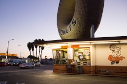 Inglewood’s Randy’s Donuts represents postwar optimism and whimsy. The shop below the donut is a typical Mid-Century Modern drive-up restaurant. New owners, expanding the brand in 2020, are placing replicas of Inglewood’s giant donut on their shops across the region.
